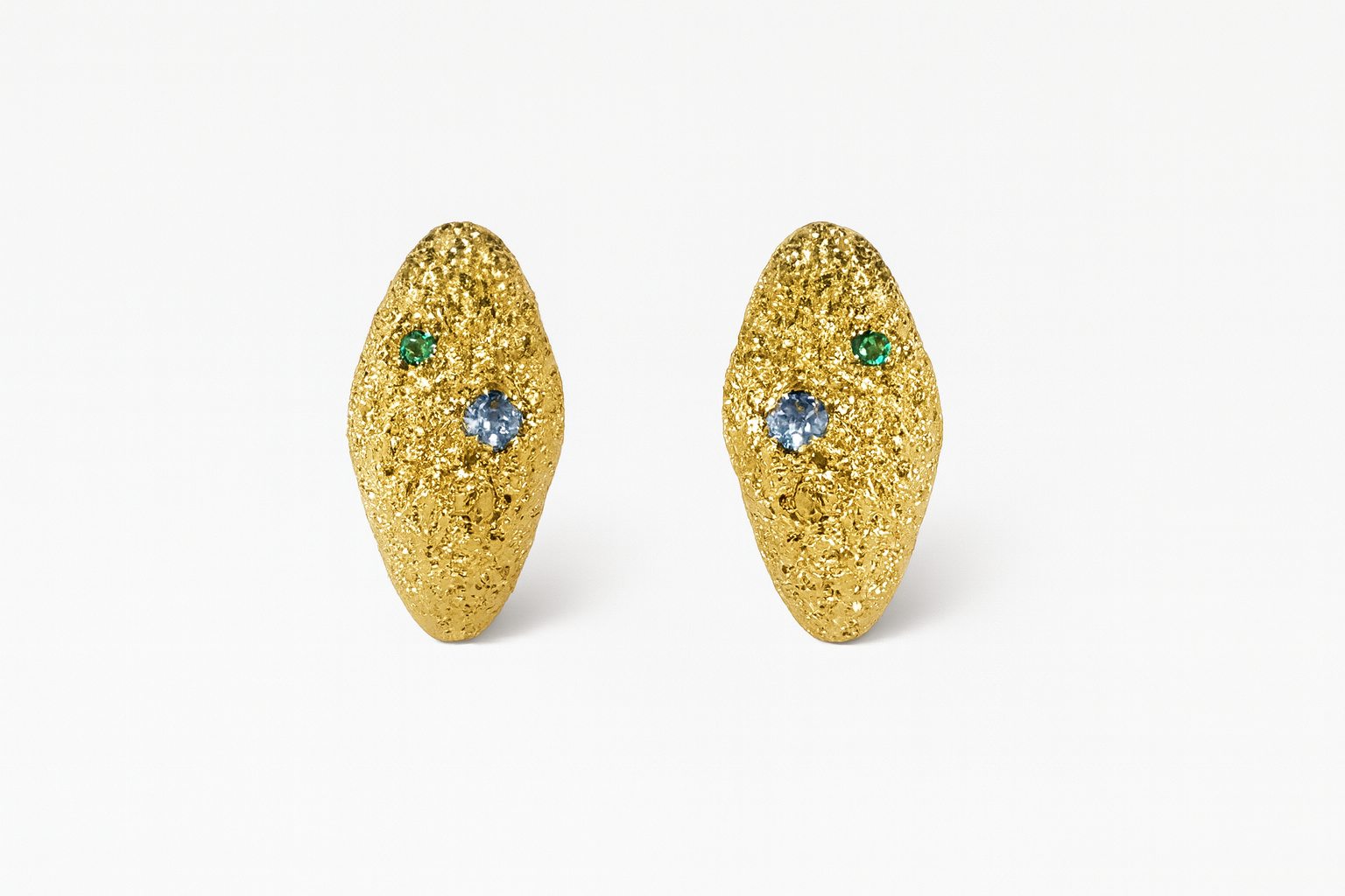 Aurora in Latin means dawn. A mysterious yet romantic time of day. Its second meaning is the phenomenon of the aurora borealis. In creating these earrings, we were inspired by both the dawn, hazy, but with flashes of warm light, and the colorful aurora borealis. In this version, the earrings are decorated with green and blue tourmaline.