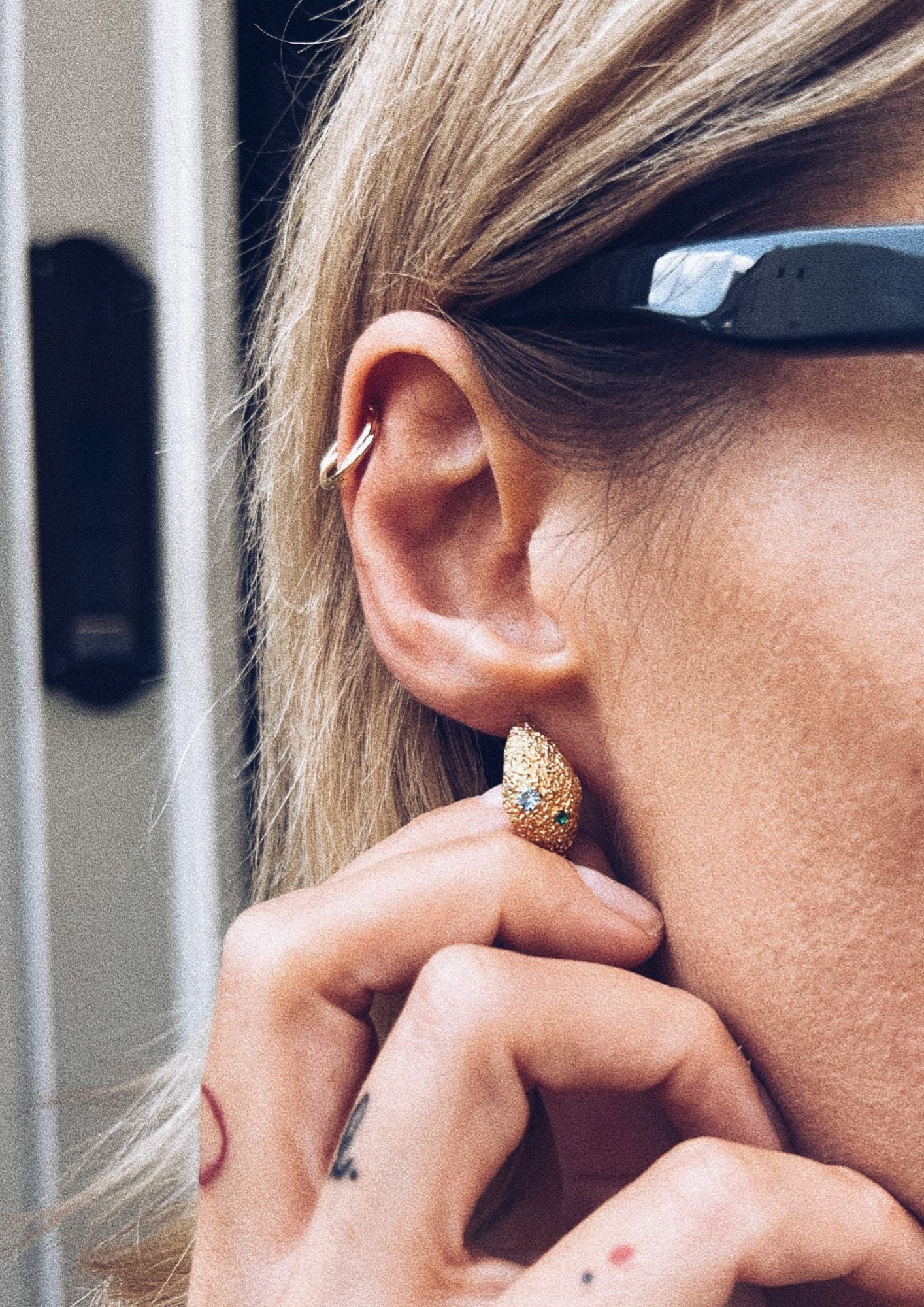 Poznaj Aurora — ręcznie wykonane kolczyki inspirowane tajemniczym świtem i magiczną zorzę polarną. Zielony i niebieski turmalin w jubilerskiej oprawie tworzy wyjątkowy duet barw i faktur.