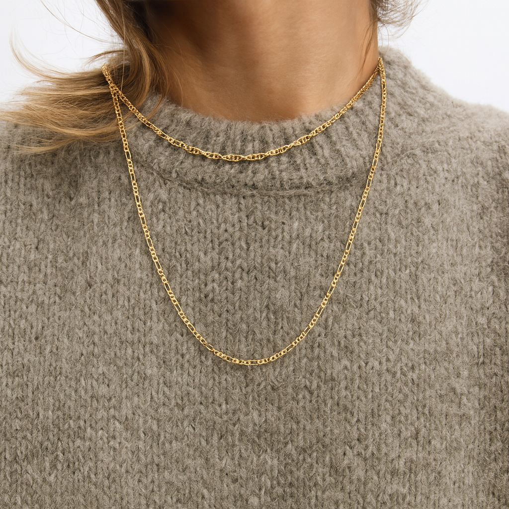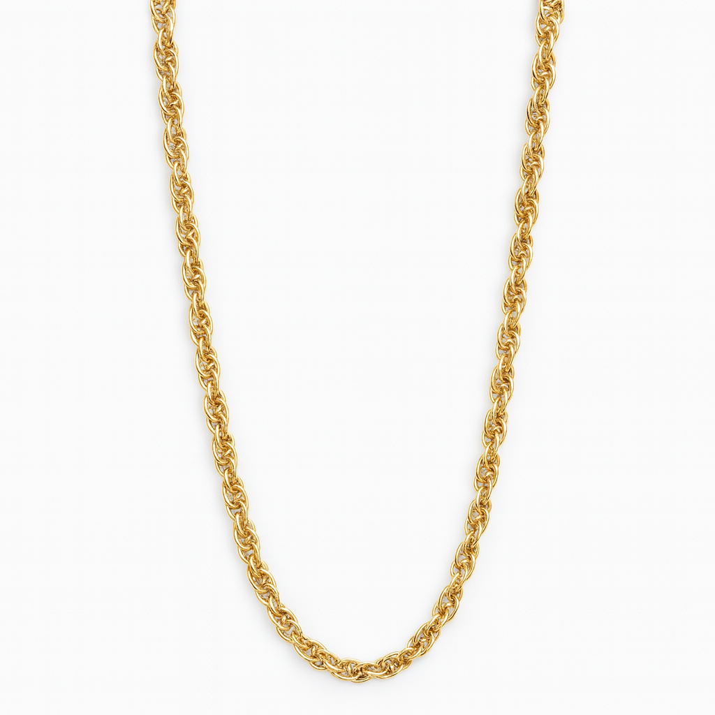 A chain with a twisted weave made of 925 silver, covered with a thick layer of 24k gold.