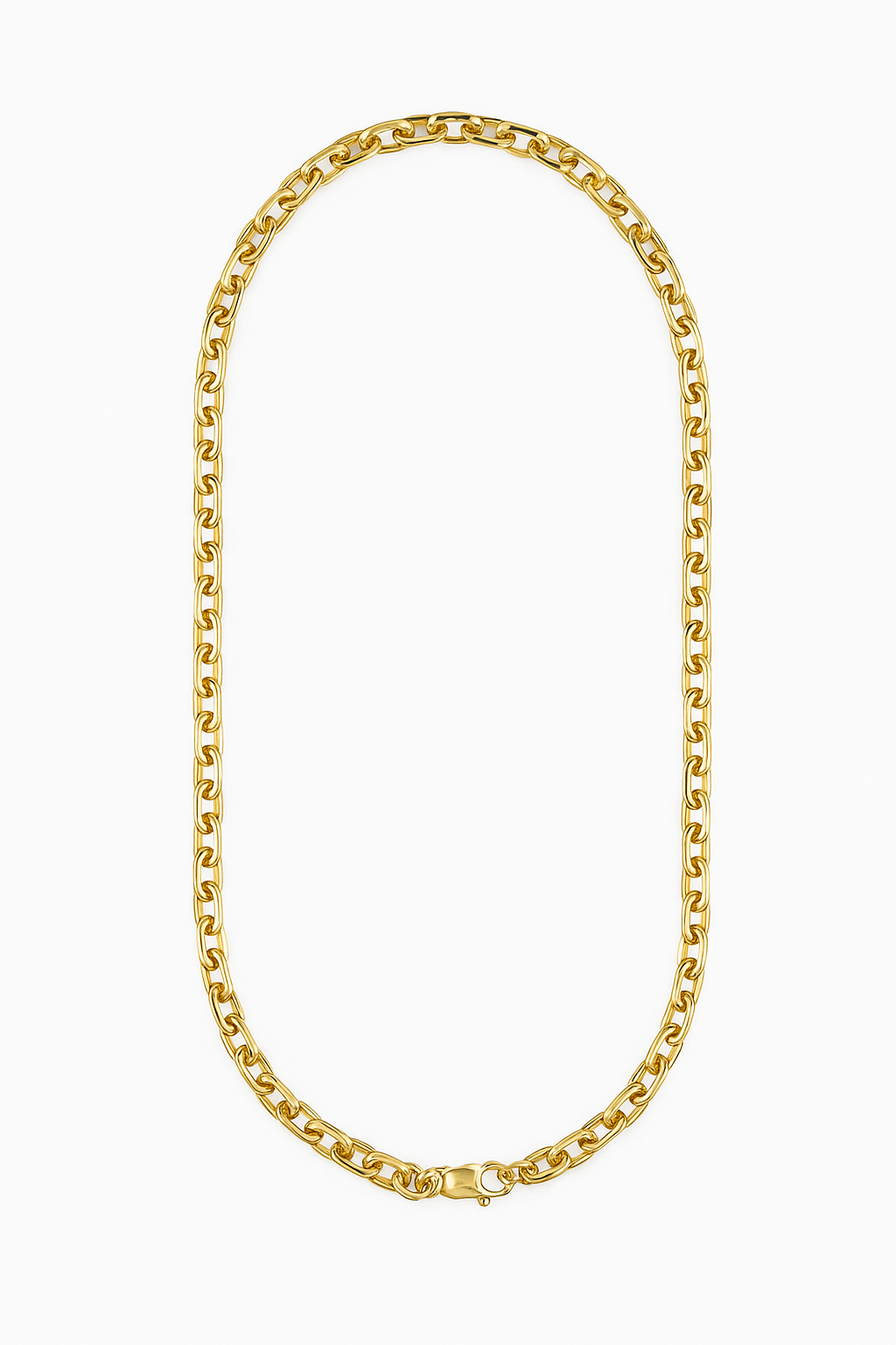 Ten łańcuszek wygląda, jakby był przywieziony prosto z Lazurowego Wybrzeża – klasyczny, błyszczący, zmysłowo ciężki i nieprzyzwoicie luksusowy.