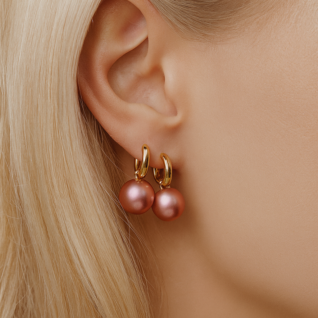 Kolczyki z prawdziwymi perłami w unikatowym różowo/łososiowym kolorze.