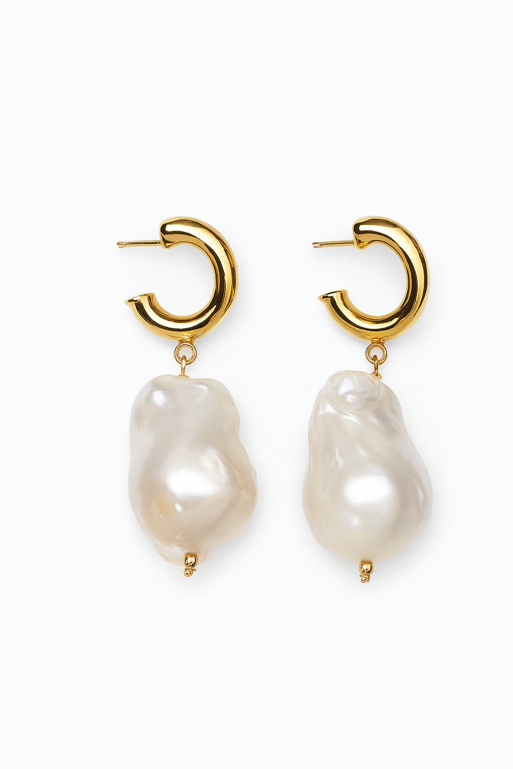 Kolczyki koła na sztyfcie z zawieszkami z naturalnych pereł barokowych. Perły te charakteryzują się bardzo nieregularnymi kształtami, każdy kamień jest inny, unikatowy.