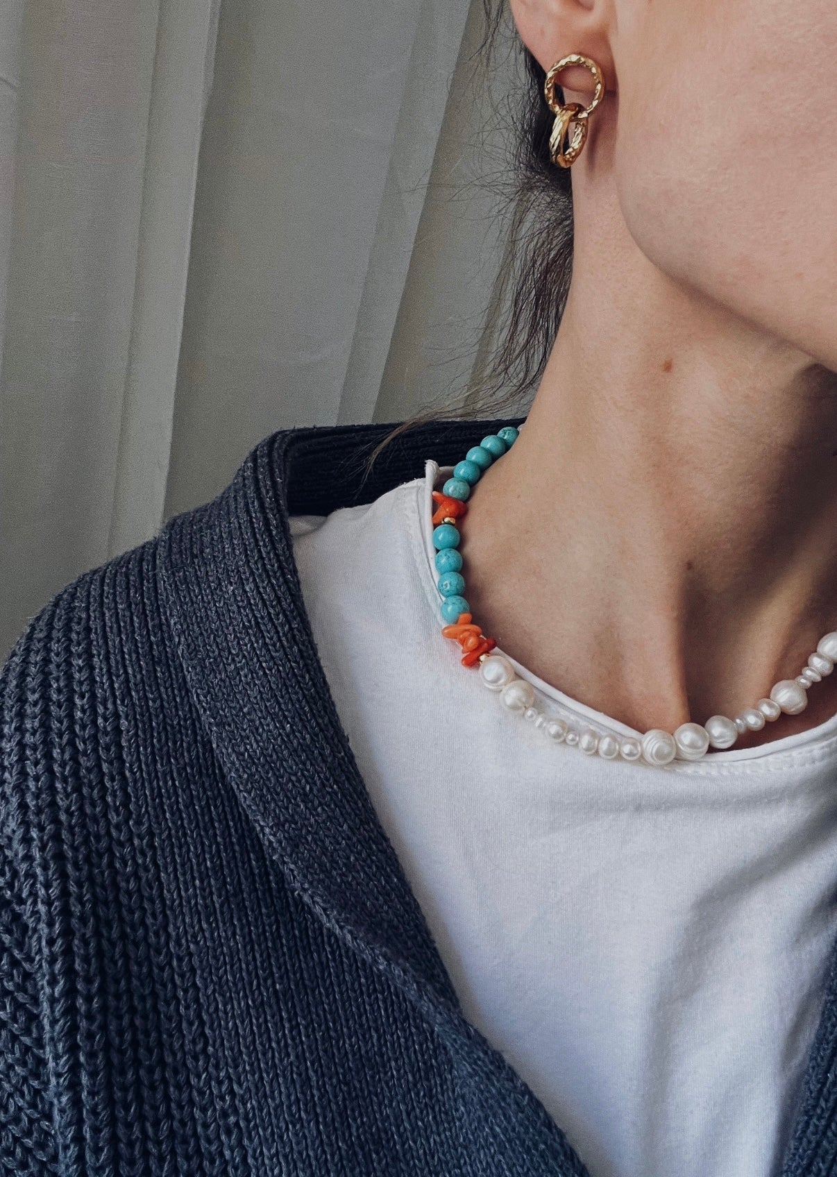 Łączy w sobie szlachetność pereł, energię turkusu i ognisty akcent korala. Inspirowany kobietami, które nie boją się koloru, kontrastu i rytmu bijącego z serca.