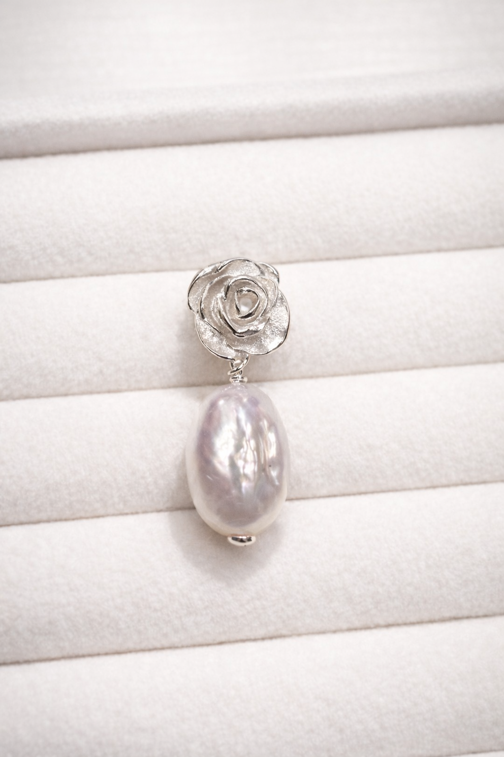 Limitowane kolczyki perla rose to spotkanie dwóch światów: rzeźbionej róży ze srebra i naturalnej perły, która nigdy nie jest taka sama.